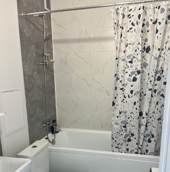 Стиральная машина, совмещённый санузел с ванной и тёплым полом.