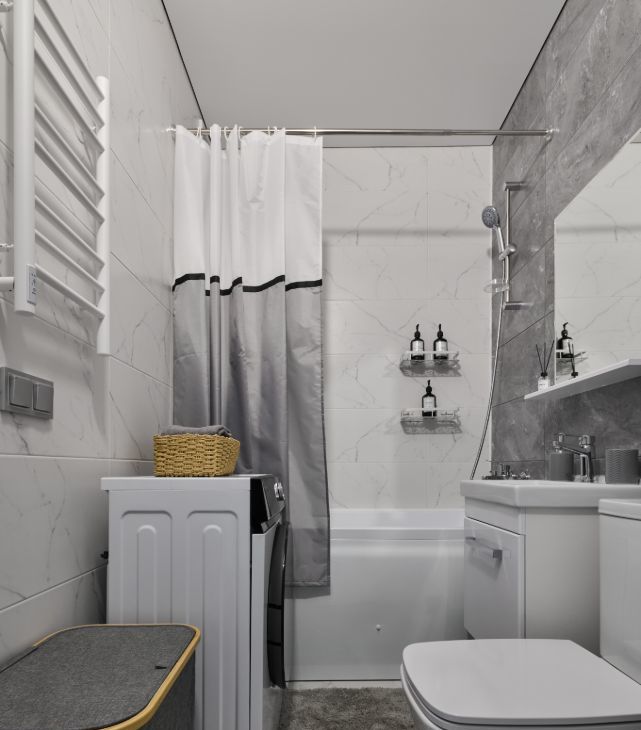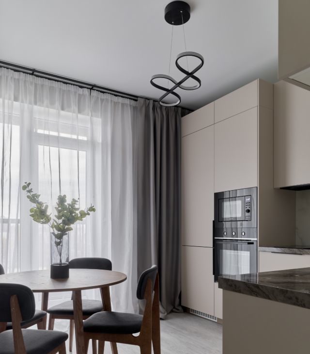 В квартире есть всё необходимое для комфортного проживания: современная мебель на кухне и в комнате, а также полный комплект техники, включая кондиционер, холодильник, посудомоечную и стиральную машины. Санузел совмещённый, оборудован ванной, что добавляет удобства. Квартира имеет доступ к интернету, что будет особенно актуально для тех, кто работает удалённо.