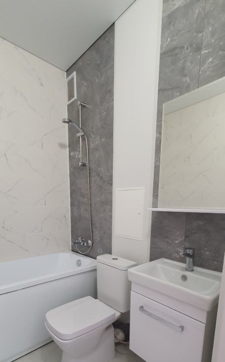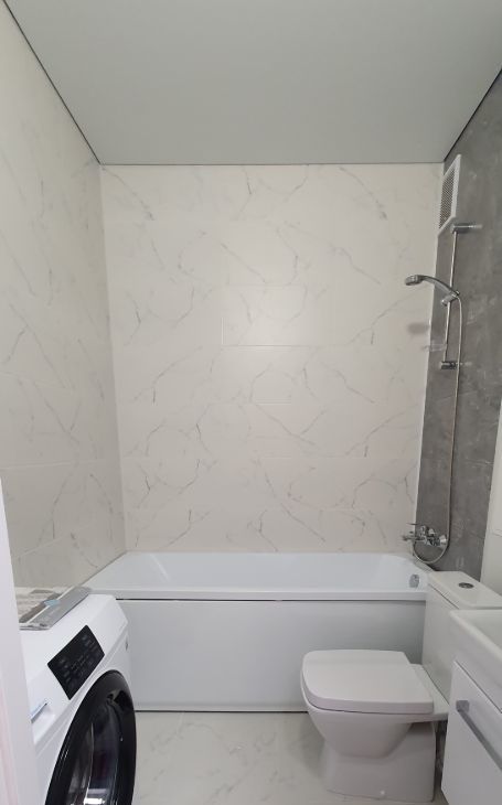 Санузел совместный с ванной комнатой. В ванной установлена стриальная машина автомат, есть полотенцесушитель и все предметы для уборки дома.