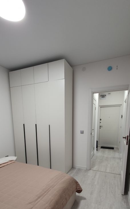 В комнате расположена двухспальная кровать с удобным матрасом, высокие шкафы для хранения вещей, есть все постельные принадлежности, гладильная доска и утюг.
