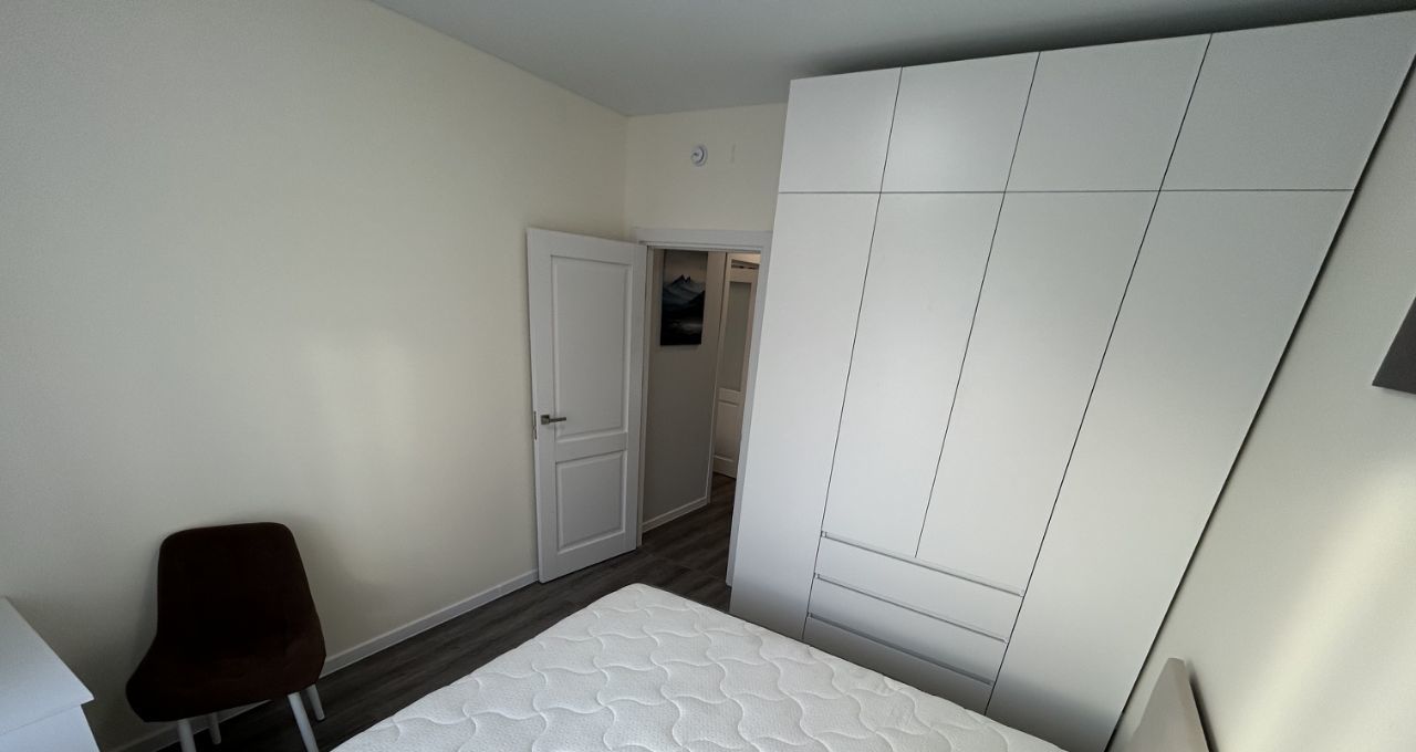- В спальне двуспальная кровать с ортопедическим матрасом 23см, большой шкаф, сталлаж, столик и стул.