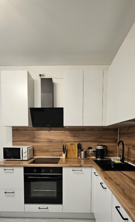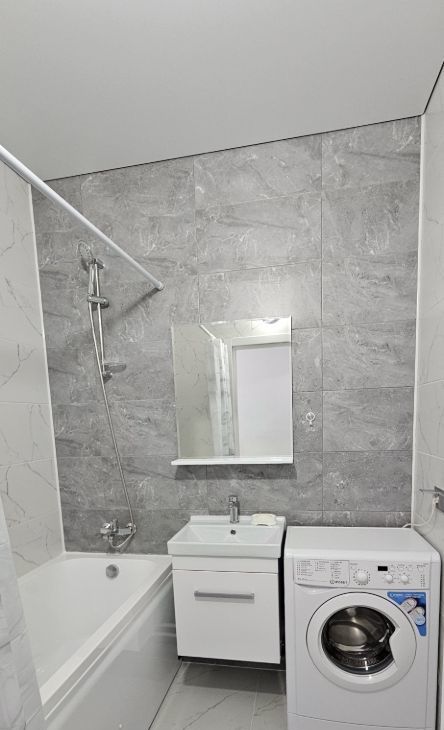 Квартира полностью укомплектована всем необходимым для проживания: встроенная кухня, варочная поверхность, вытяжка, посудомоечная машина, холодильник, диван выкатной, стол и стулья, выход на шикарную застекленную лоджию с панорамными окнами из КУХНИ-ГОСТИНОЙ, 2 больших САНУЗЛА: в туалете - раковина и удобный шкафчик для хранения, в ванной комнате - стиральная машина, в КОМНАТЕ - кровать 160х200 и тумбочки, шкаф, стол письменный и кресло, в ПРИХОЖЕЙ вешалка и обувница.