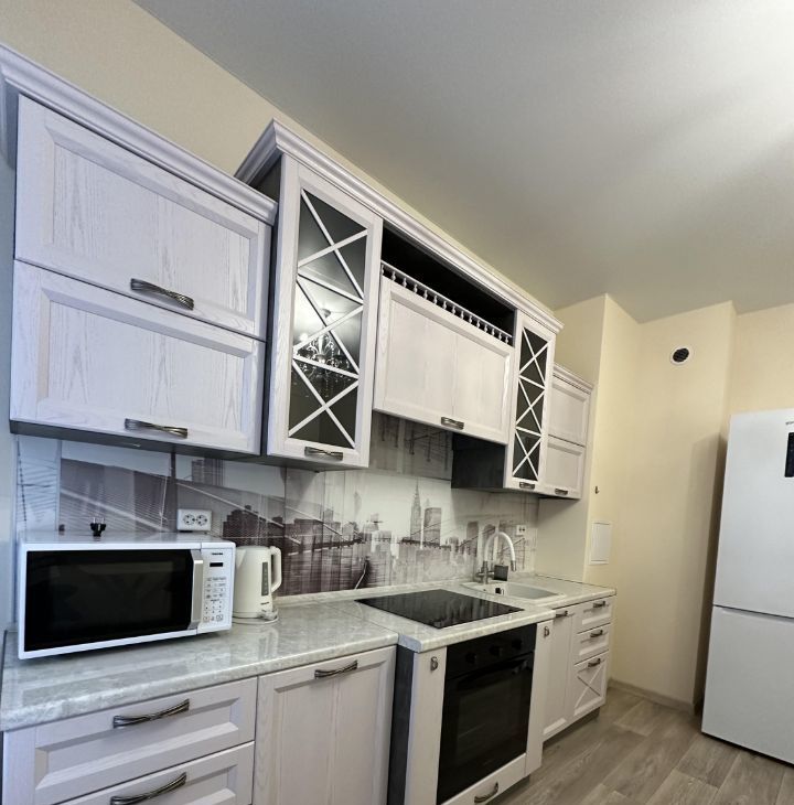 Техника: Всё для жизни уже есть — стиральная машина, сушилка для одежды, духовой шкаф, варочная панель и микроволновая печь. Осталось привезти только личные вещи.
