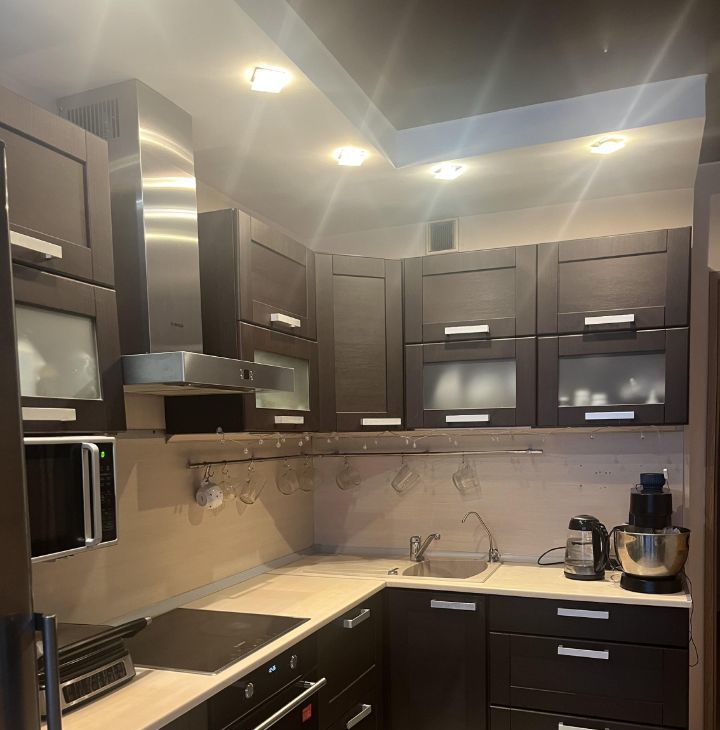 Состояние соответствует фотографиям. Без мебели, в наличии б/у кухонный гарнитур, электроплита, духовой шкаф и сантехника, всё исправно. Имеется удобная гардеробная.