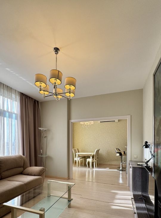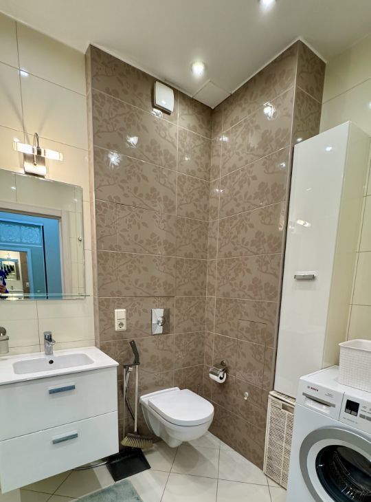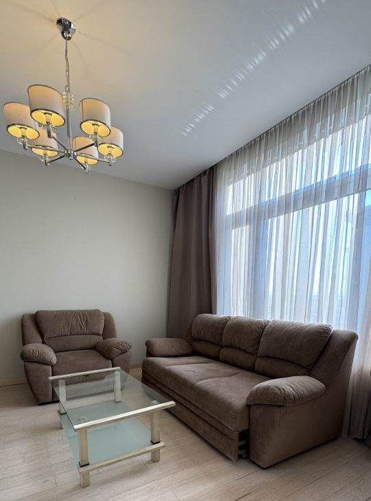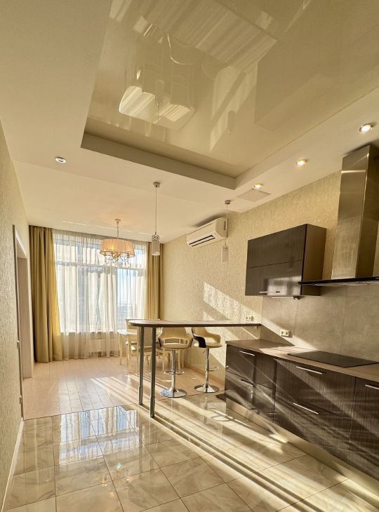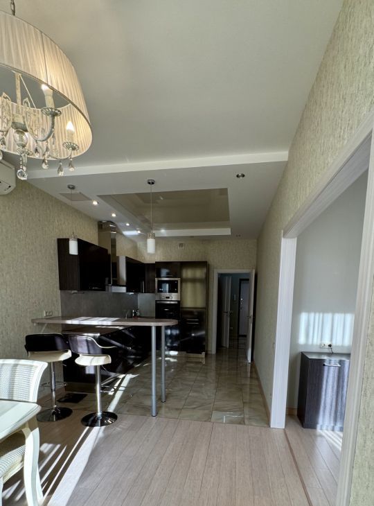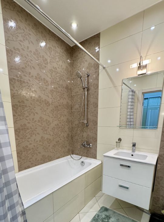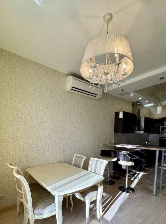 В квартире сделан дизайнерский ремонт, который создает уютную и стильную атмосферу. В наличии вся необходимая мебель как на кухне, так и в комнате, а также современная техника: кондиционер, холодильник, посудомоечная машина, телевизор и стиральная машина. Ванная комната оборудована полноценной ванной, поэтому можно расслабиться после насыщенного дня.