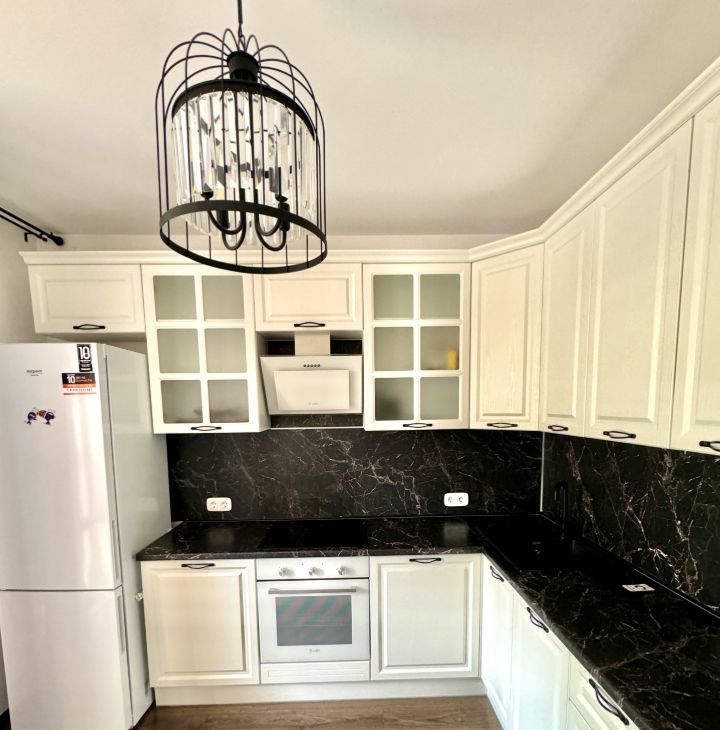 • Вся необходимая мебель и техника: кухонный гарнитур, холодильник, стиральная и посудомоечная машины, кондиционер, телевизор.