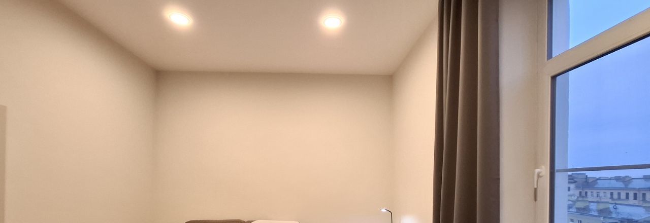 В квартире выполнен дизайнерский ремонт, который сочетает в себе стиль и комфорт. Комната и кухня полностью меблированы, что позволяет вам сразу же почувствовать себя как дома. В наличии вся необходимая техника: холодильник, посудомоечная и стиральная машины. Санузел совмещенный, оборудован современной душевой кабиной. Окна выходят во двор на крыши домов исторического центра Санкт-Петербурга, что гарантирует тишину и спокойствие.