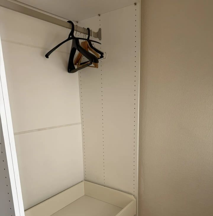 В комнате (14м²) — комфортный диван и вместительный шкаф-купе, где поместится весь ваш гардероб .