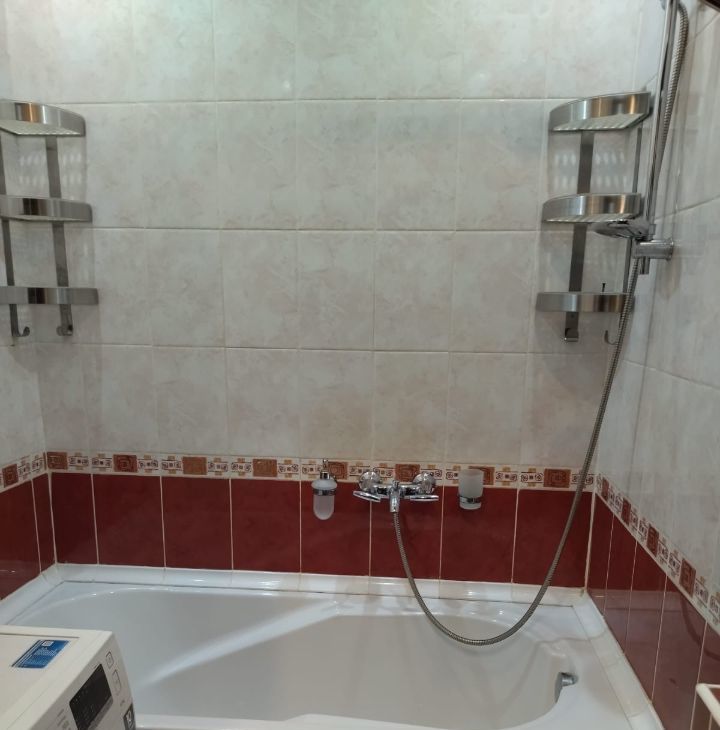 Квартира после евроремонта, в ней есть все необходимое для комфортного проживания. В кухне и комнате стоит современная мебель. Для удобства жильцов в квартире есть холодильник, телевизор и стиральная машина. Санузел совмещенный, с ванной. Высота потолков - 2.7 метра, что добавляет ощущение простора.