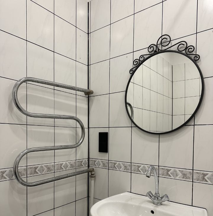 В квартире очень маленький туалет, к сожалению мы не смогли изменить эту планировку.