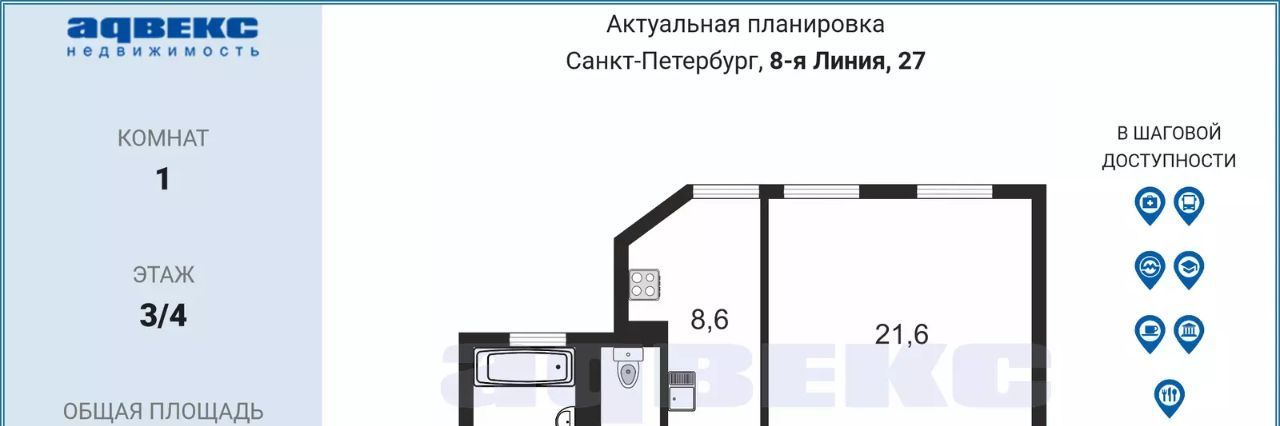 1-к кв. Санкт-Петербург 8-я Васильевского острова линия, 27 (45.0 м²)