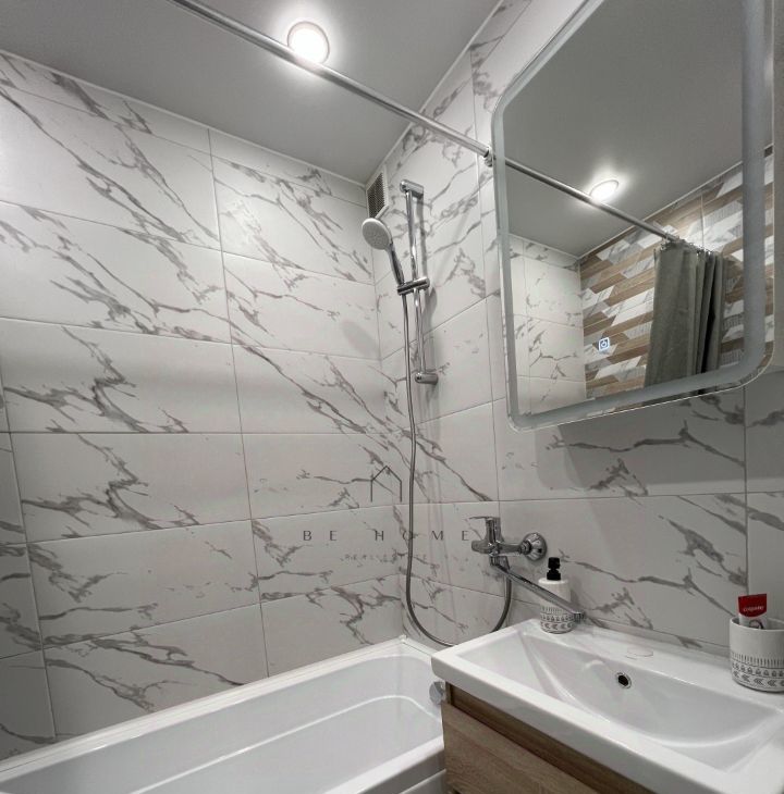 Планировка квартиры включает просторную кухню, изолированную комнату, раздельную ванную комнату с ванной.