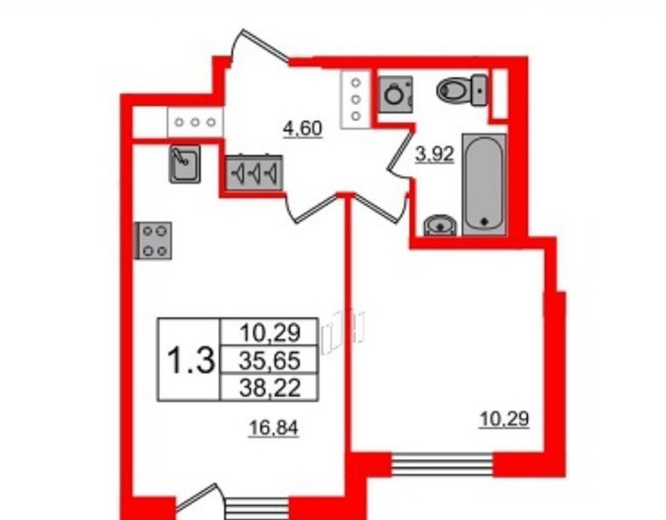 1-комнатная квартира: Санкт-Петербург, Комендантский проспект, 69 (34.2 м²)