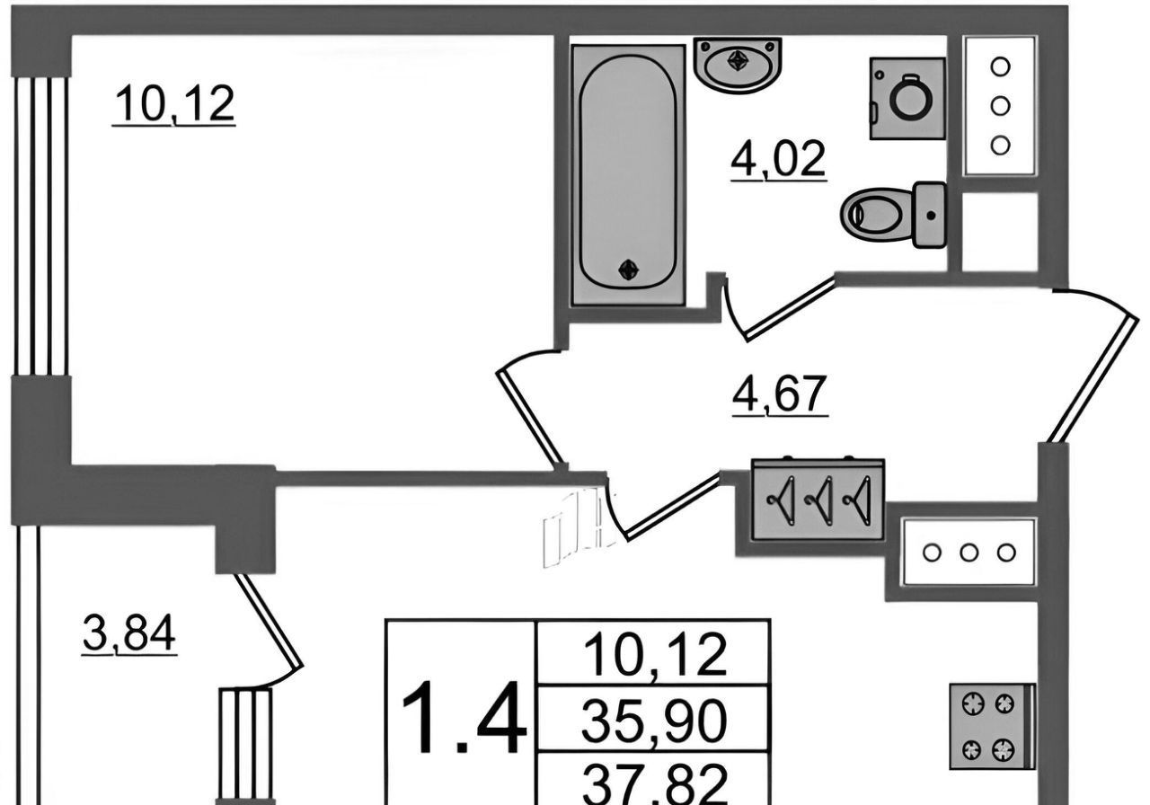 1-к кв. Санкт-Петербург аллея Арцеуловская, 19 (35.6 м²)