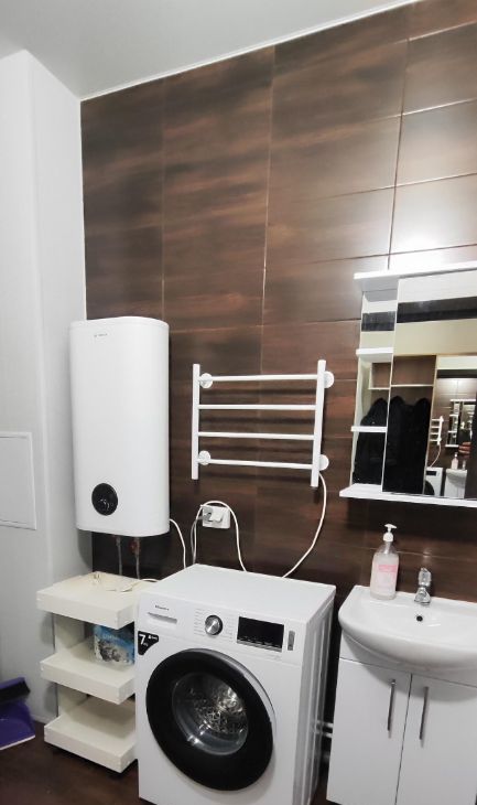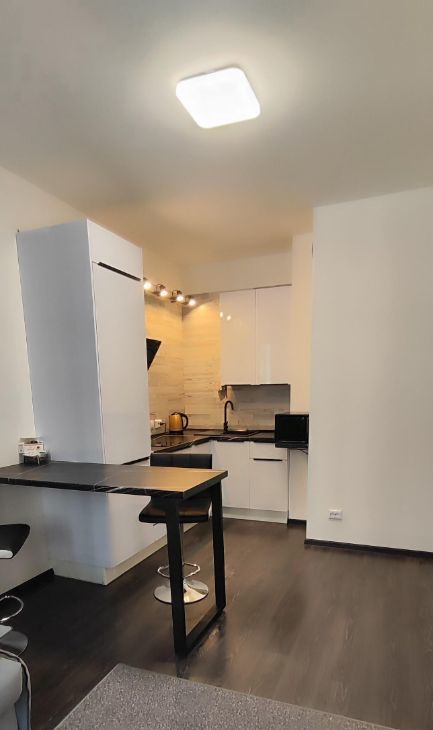 Квартира полностью готова для комфортного проживания — выполнен качественный ремонт. Просторная кухня площадью 15 кв. м оснащена всем необходимым: холодильником, посудомоечной машиной и современной мебелью. В комнате также имеется мебель, а для вашего досуга предусмотрен телевизор. Ванная комната оборудована ванной, а также есть стиральная машина, водонагреватель