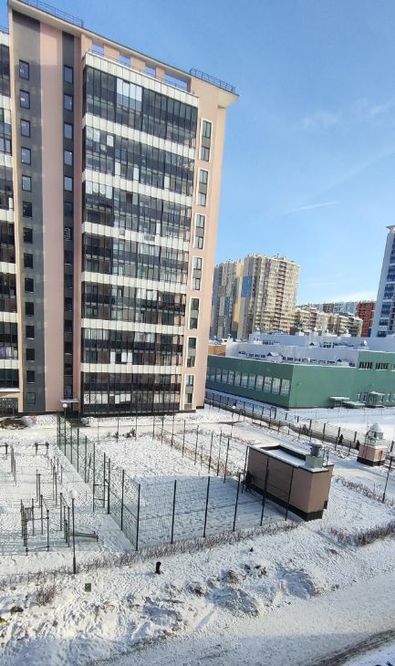 Расположена на 4 этаже 14-этажного монолитно-кирпичного здания. Высокие потолки 2.77 метра, окна выходят во двор . В доме есть как пассажирский, так и грузовой лифты.