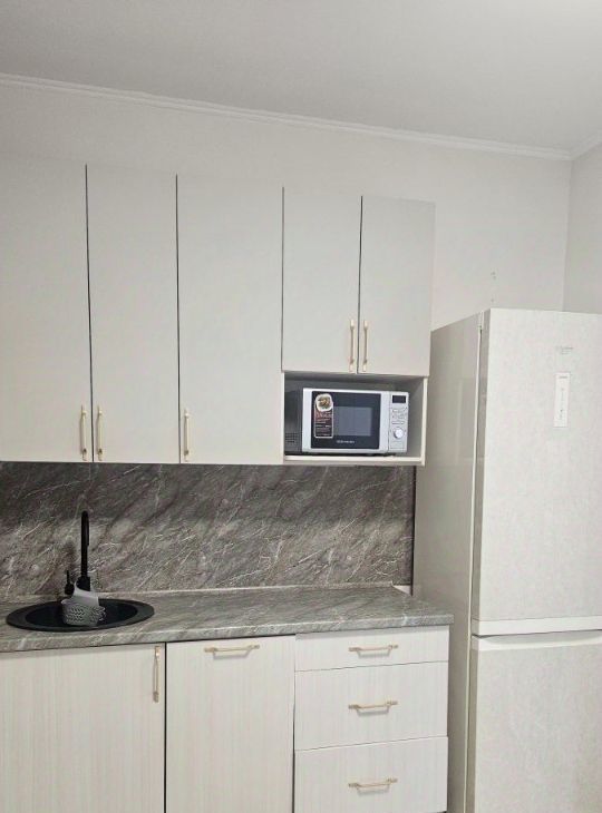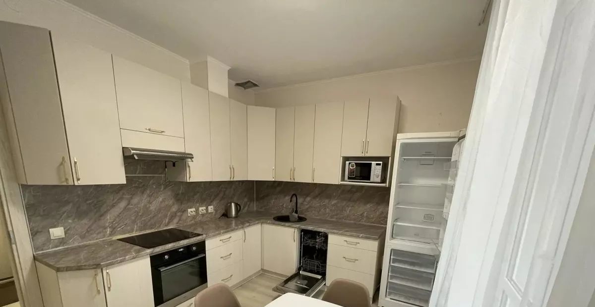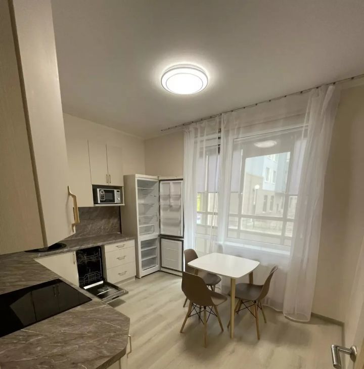 Квартира светлая, современная, полностью готова для комфортного проживания. Просторная кухня 11 кв.м со встроенным кухонным гарнитуром и всей необходимой техникой: