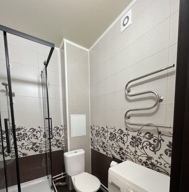 Вся мебель в комнате и частично в кухне новая (куплена пол года назад), новые холодильник и телевизор, выполнена замена душевой кабины от застройщика.