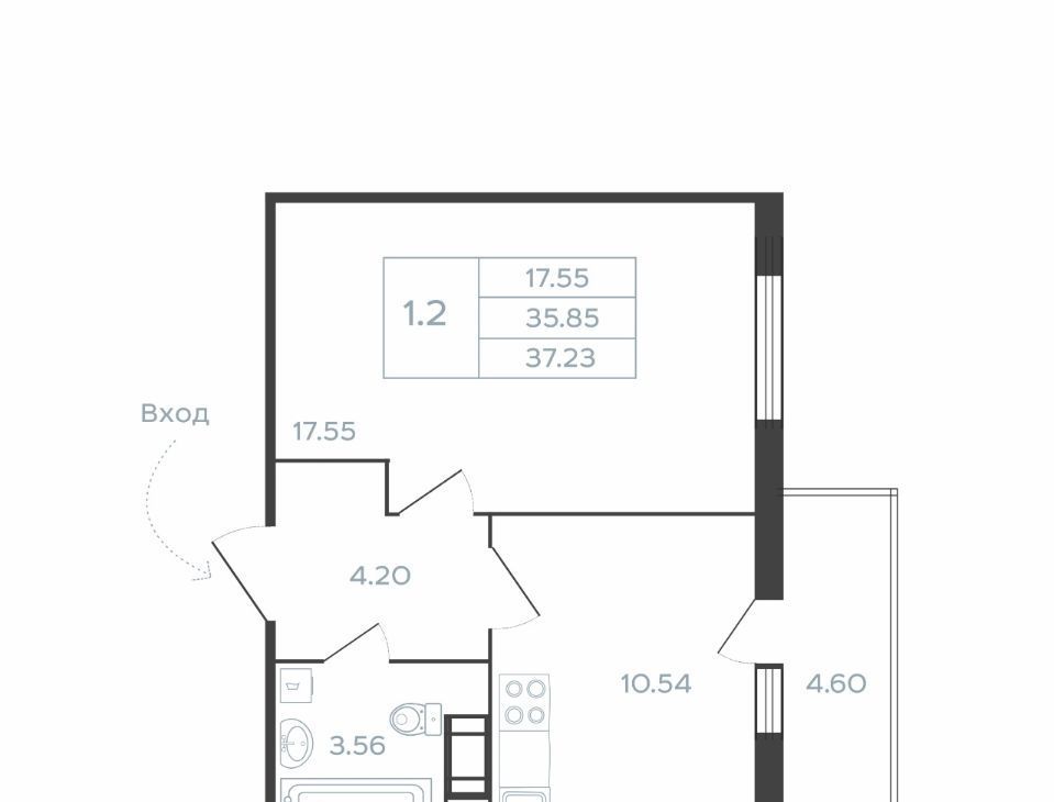 1-комнатная квартира: Санкт-Петербург, Комендантский проспект, 17к1 (42 м²)