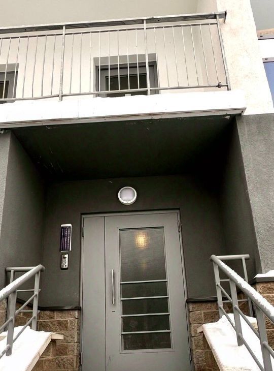 На лифтовой площадке установлена дверь, отделяющая квартиры и камера.