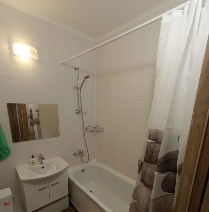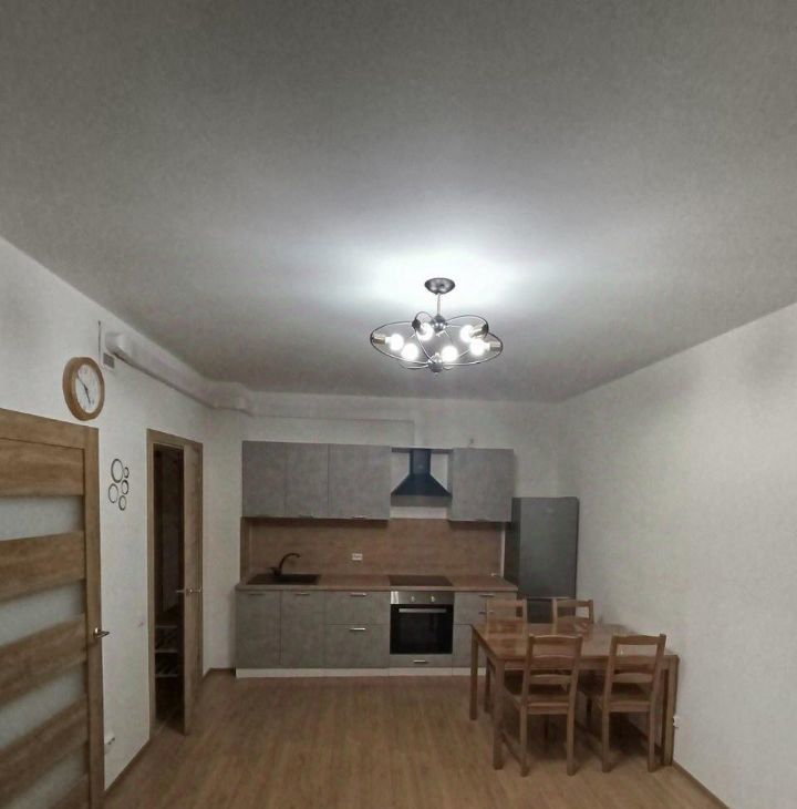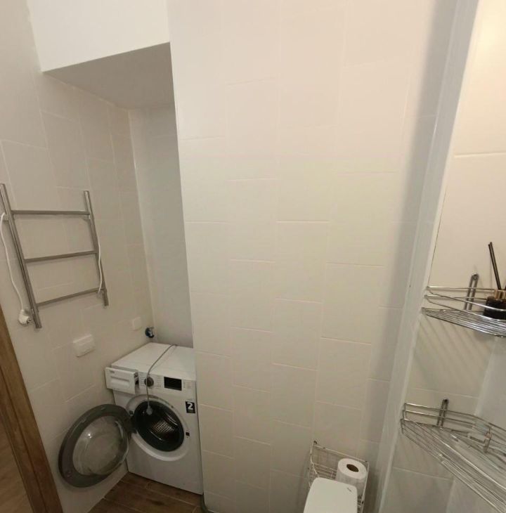 Жилье оснащено необходимой мебелью для комфортного проживания. Кухня оборудована современной техникой, включая варочную панель и духовой шкаф. Санузел совмещенный, с ванной и стиральной машиной.
