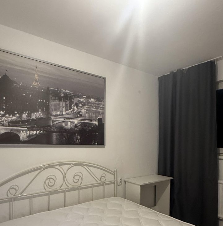 Сдаётся однокомнатная квартира, спальня 11 м², двуспальная кровать, шкаф, большой телевизор со смарт тв. В коридоре своя гардеробная. Кухня 7 м², полностью новая, со всей посудой и техникой.