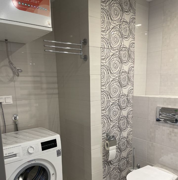 В квартире выполнен дизайнерский ремонт, который удовлетворит самый изысканный вкус. Здесь есть вся необходимая мебель как на кухне, так и в комнате. Из техники в вашем распоряжении холодильник, посудомоечная и стиральная машины, а также телевизор. Санузел совмещённый и оборудован ванной. Окна выходят как на улицу, так и во двор, а это значит, что в квартире всегда будет достаточно света и свежего воздуха.