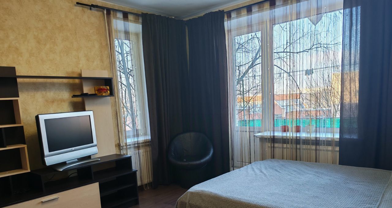 Сдаётся уютная однокомнатная квартира в кирпичном доме на пятом этаже. Общая площадь квартиры — 33.7 кв. м, жилая площадь — 17.7 кв. м, кухня — 7.7 кв. м. Дом построен в 1969 году и находится в 9-этажном здании с лифтом. Высота потолков — 2.5 метра, окна выходят как на улицу, так и во двор, что обеспечивает хорошую освещённость и тишину. Есть балкон, квартира оснащена всем необходимым для комфортной жизни- мебель в комнате и на кухне, удобная кровать с матрасом, шкаф, телевизор, стиральная машинка, сушилка, микроволновка, чайник, вся кухонная утварь. Квартира полностью готова для проживания.