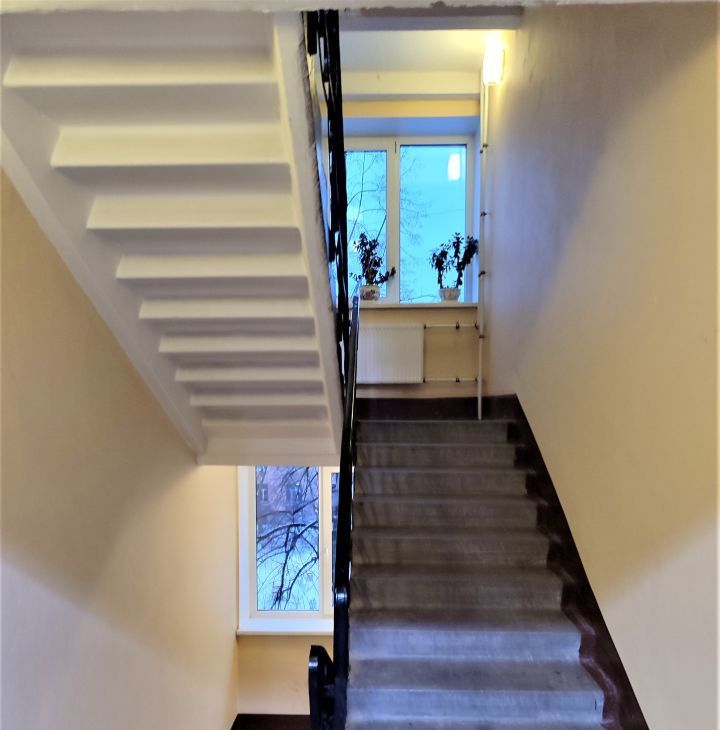 Закрытая парадная с высоким крыльцом, круглосуточный консьерж, отремонтированная лестница, просторные коридоры и площадки около лифтов. Есть мусоропровод. 2 лифта пассажирский и грузовой. Во дворе оборудованная детская площадка и всегда есть места для парковки автомобилей.