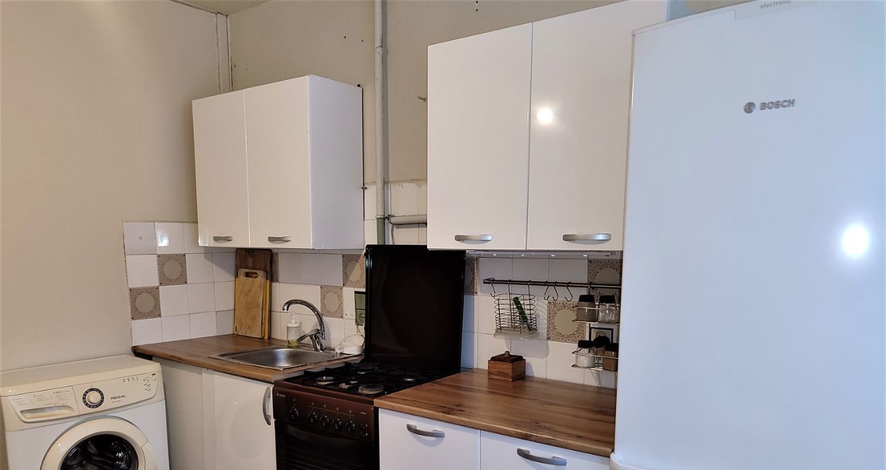 Квартира теплая, тихая, светлая, уютная. В комнате новая мебель белые платяной шкаф, письменный стол, прикроватная тумбочка. Двуспальная кровать 180*200 с совершенно новым ортопедическим матрасом. Новый кухонный гарнитур, газовая плита, холодильник Bosh, стиральная машина.