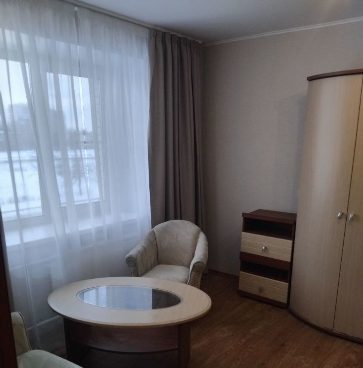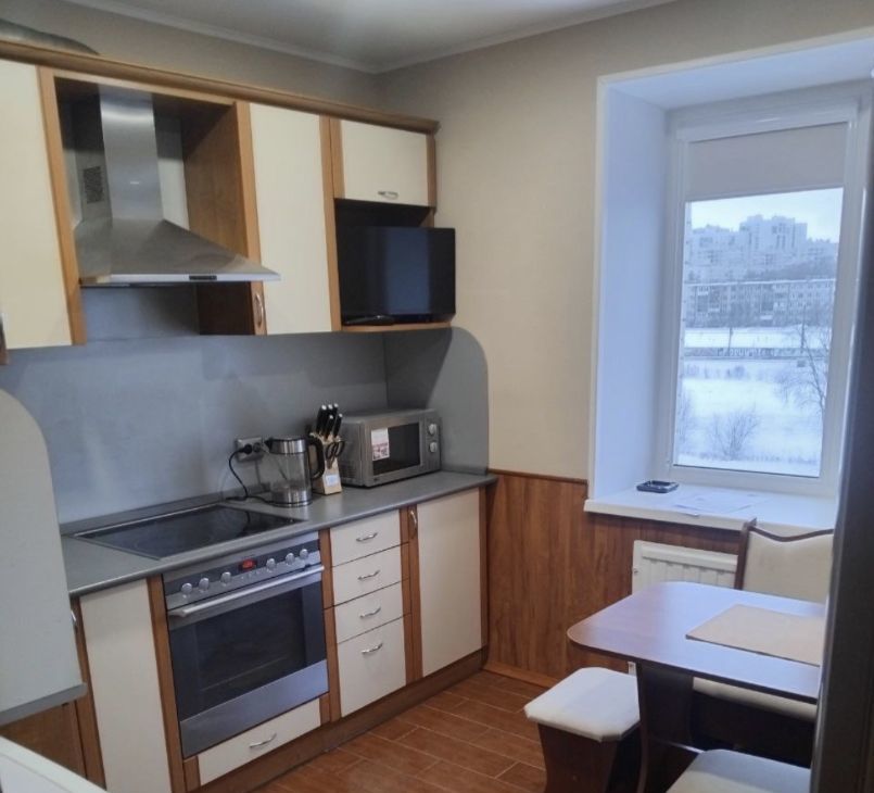 Квартира с евроремонтом, в ней есть всё необходимое для комфортной жизни. Жилая площадь составляет 15,4 кв. м, кухня - 8,7 кв. м. В кухне и комнате есть мебель, также установлены холодильник и телевизор, все в состоянии идеальном.