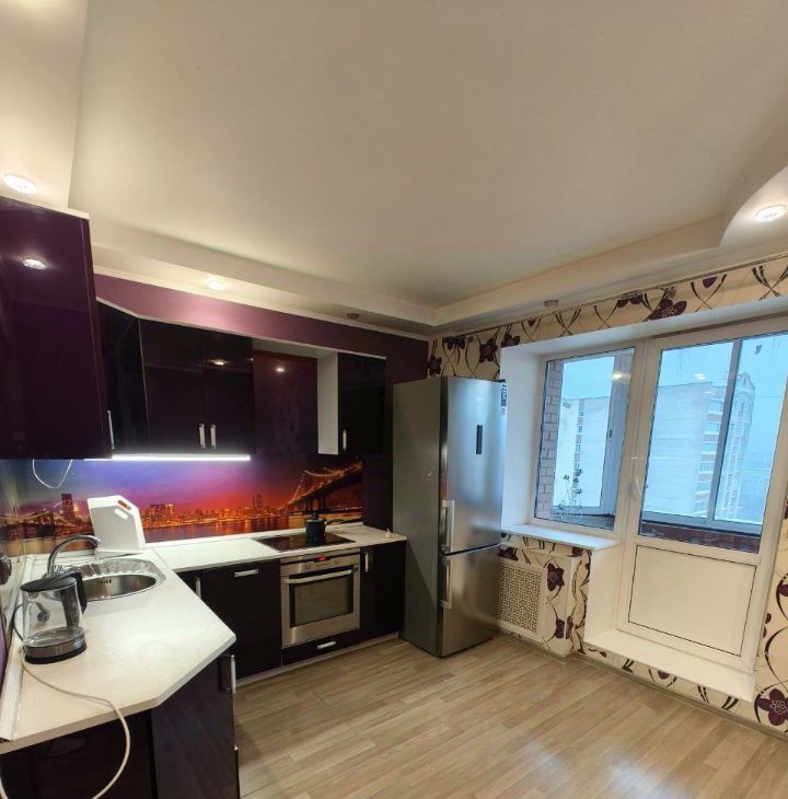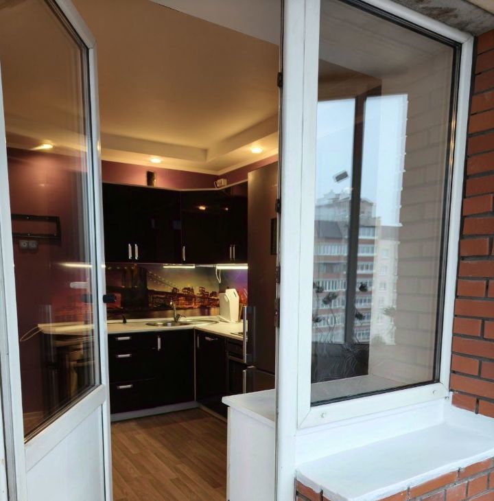 Квартира просторная,видовая 40 метров , балкон 9 метров -застеклен, можно любоваться видами на город.