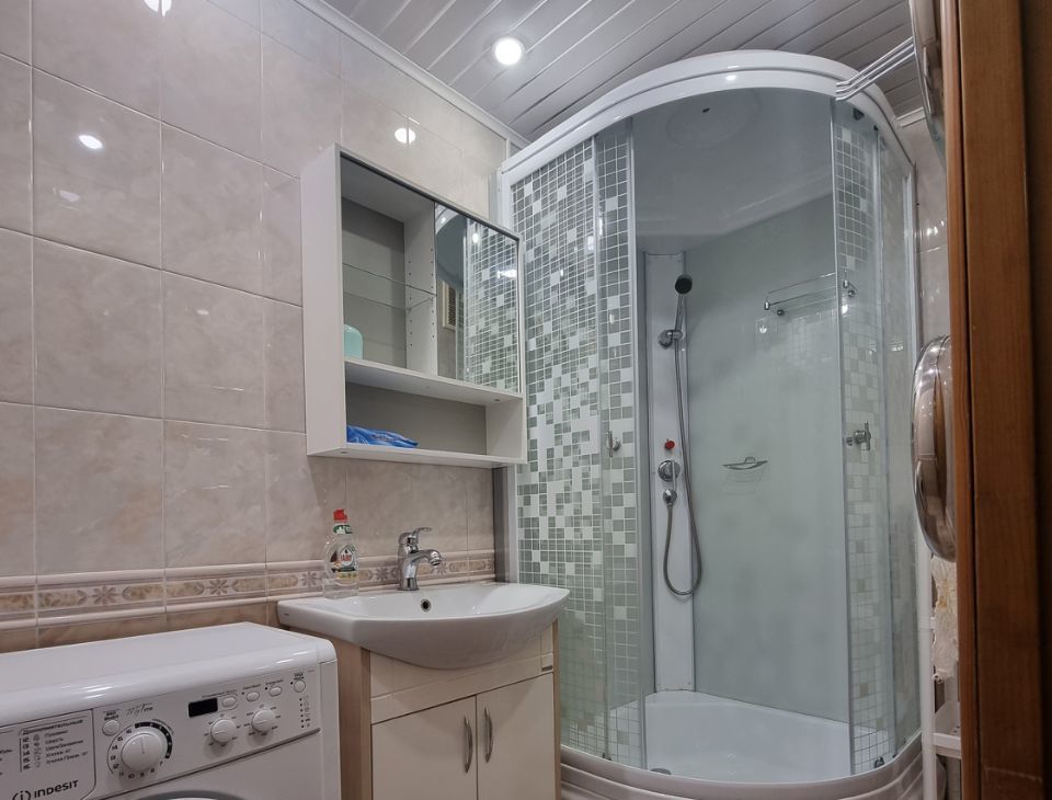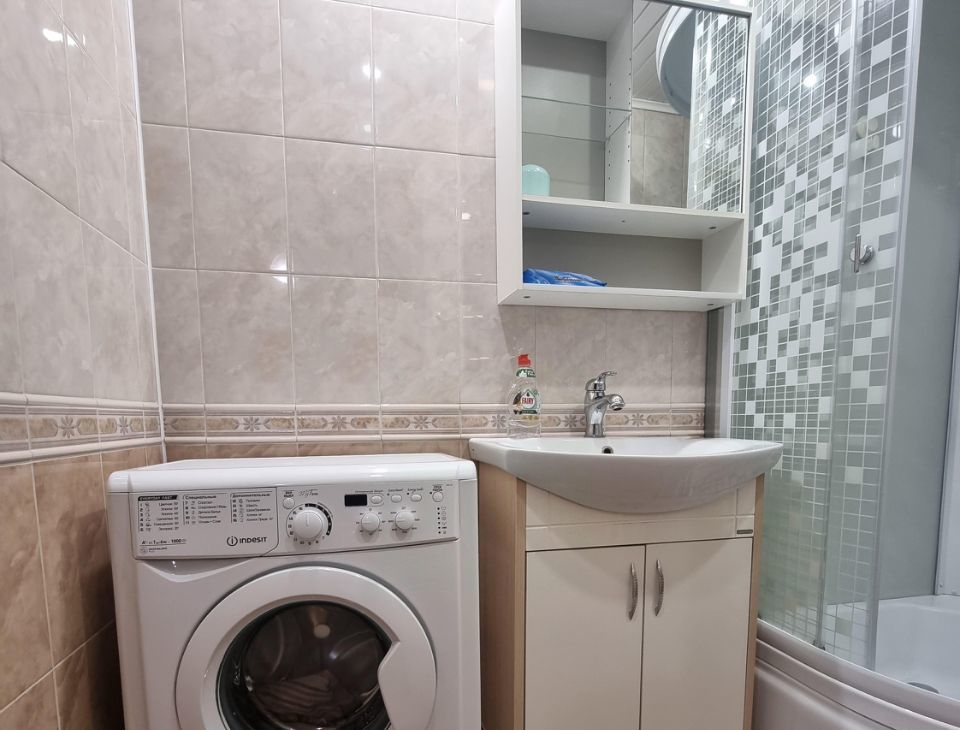 В квартире есть всё необходимое для комфортного проживания: современная мебель на кухне и в комнате, а также вся необходимая техника — холодильник, телевизор и стиральная машина. Удобная планировка включает отдельный санузел с душевой кабиной. Дополнительно в квартире есть лоджия, где можно приятно проводить время.