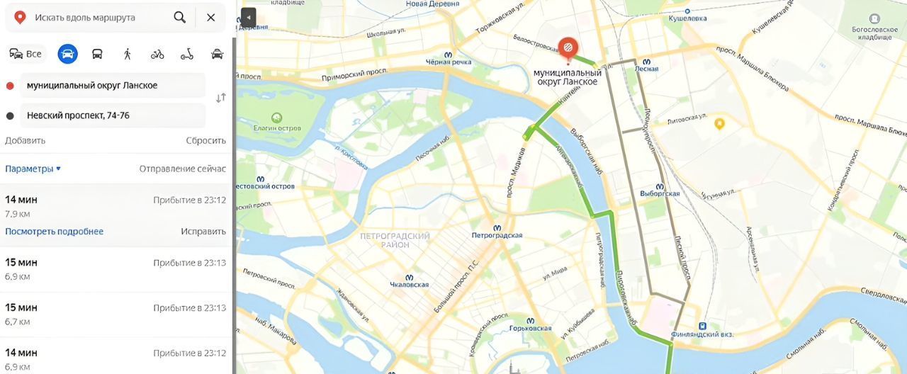 В пешей (10 мин) доступности м.Черная Речка и м. Лесная