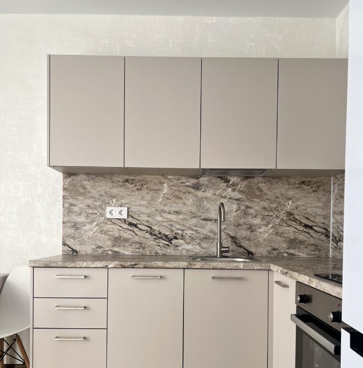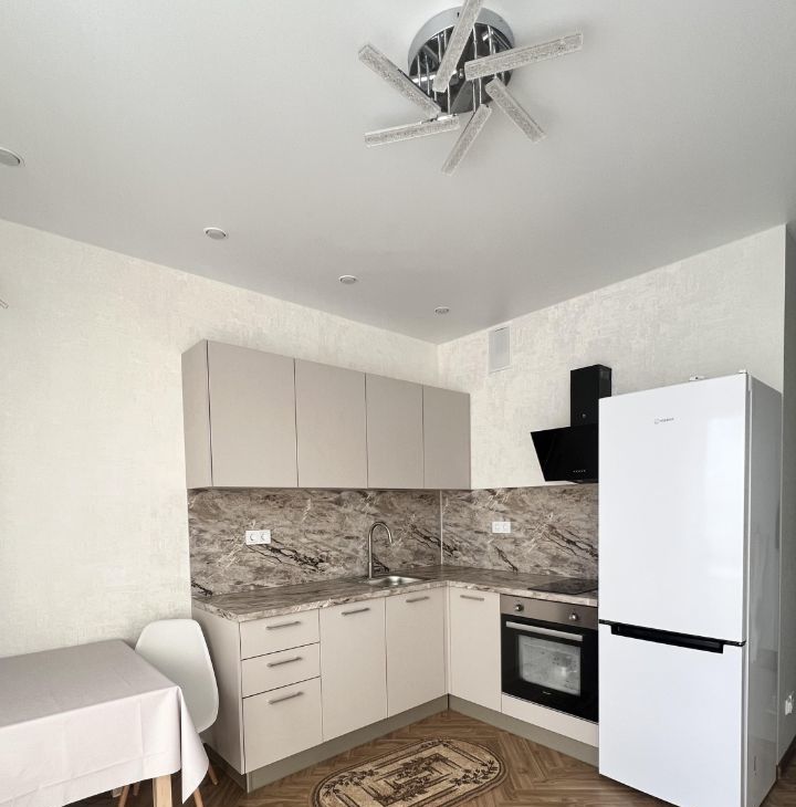 Кухня: посудомойка, духовой шкаф, вытяжка, варочная панель, большой холодильник. 2 основных освещения + карнизная подсветка для уютных вечеров.