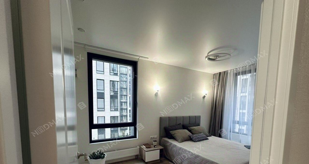В квартире новая мебель и бытовая техника, современный ремонт, кондиционер, большие окна, лоджия.