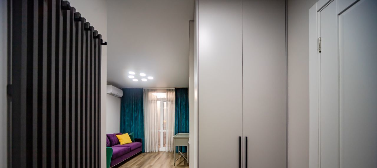 Места для хранения вещей шкаф в прихожей (1 м), большой шкаф в спальне (2,9 м). Кухонный гарнитур и обеденный стол. Диван в гостиной (не раскладывается). Двуспальная кровать с ортопедическим матрасом (1,6х2,0).