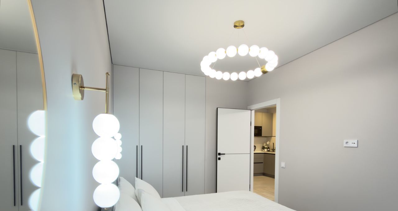 • Двуспальная кровать с ортопедическим матрасом (160x200). Диван в гостиной раскладывается в полноценное двуспальное место