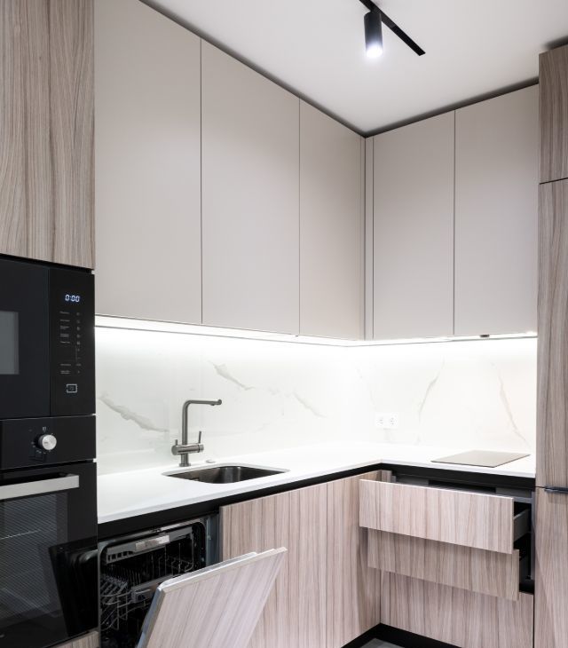 Полная комплектация: Вся необходимая техника (кондиционеры, холодильник, духовой шкаф, посудомоечная машина, измельчитель) и стильная мебель.