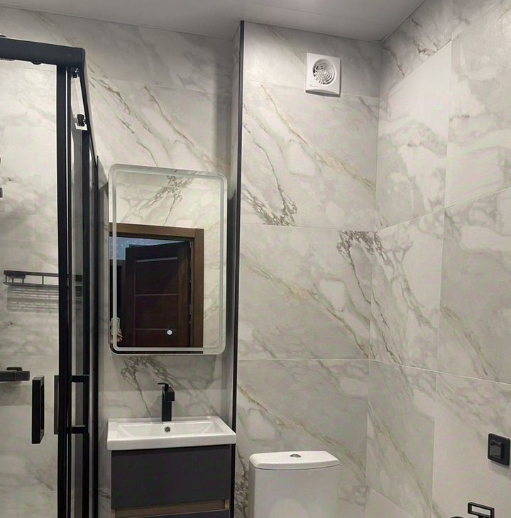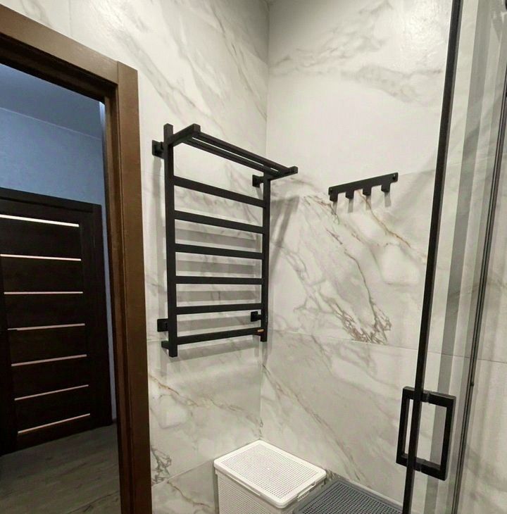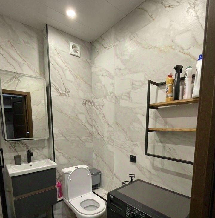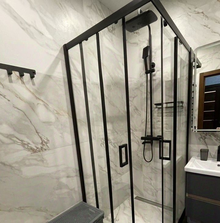 Санузл оснащен душевой кабиной из каленого стекла 6 мм, Rоyаl Ваth, электрическим беспроводным полотенцесушителем, унитазом АmРm, стиральной машиной Веkо,