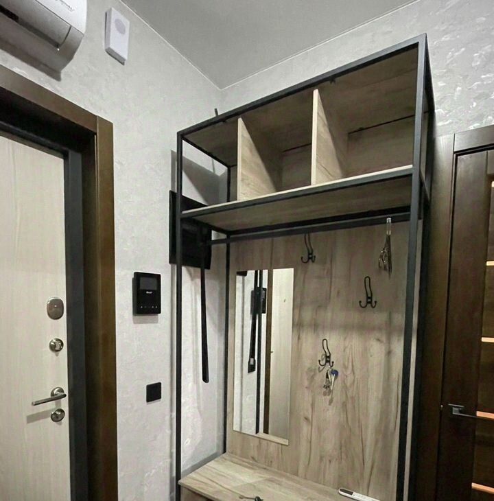 Прихожая оснащена роутером, гарнитуром в стиле Лофт, Видеодомофон Ваs Iр