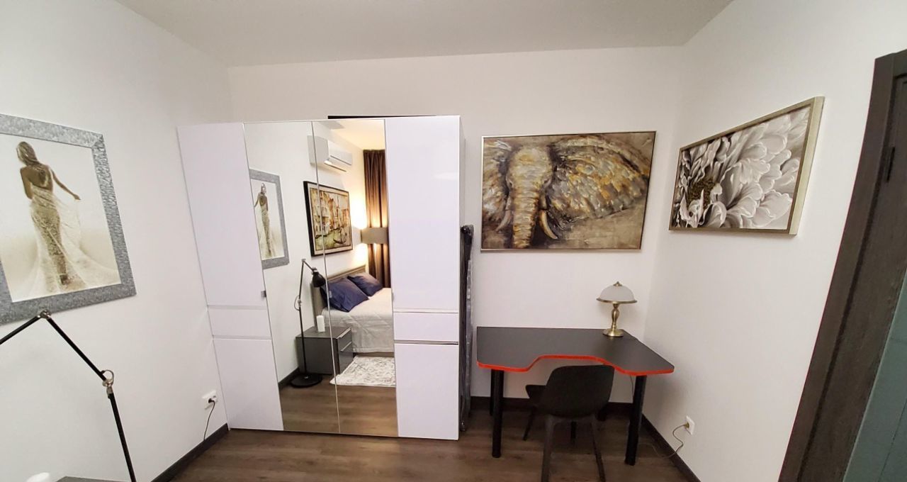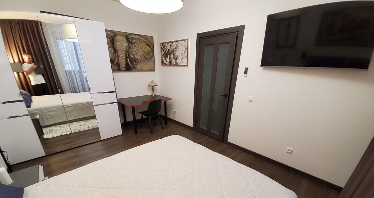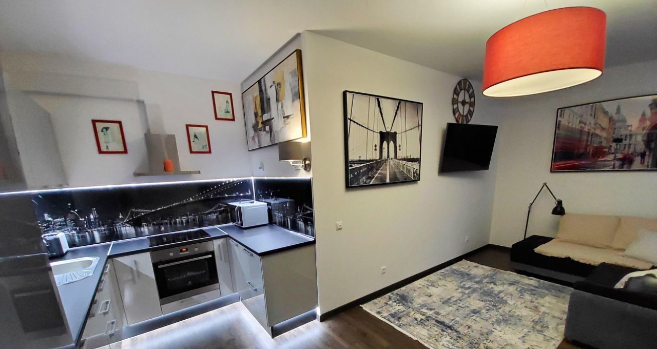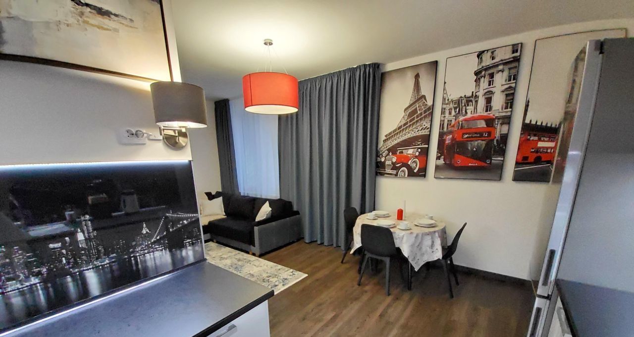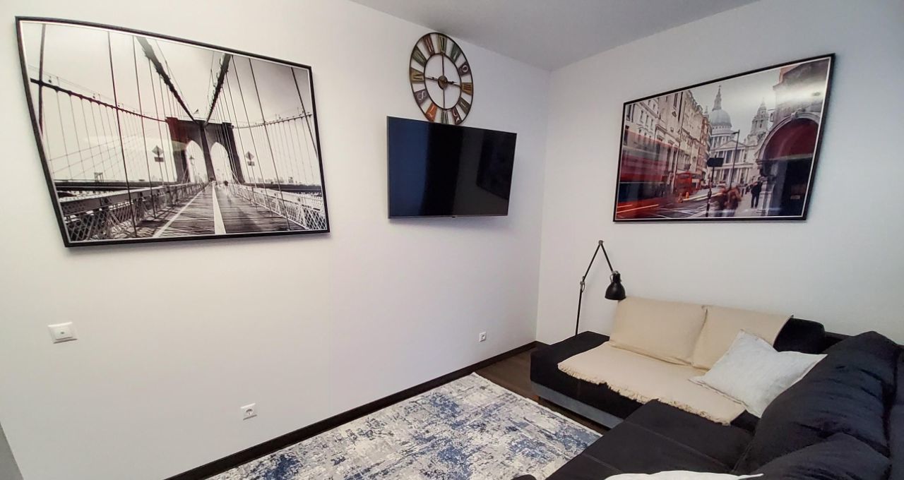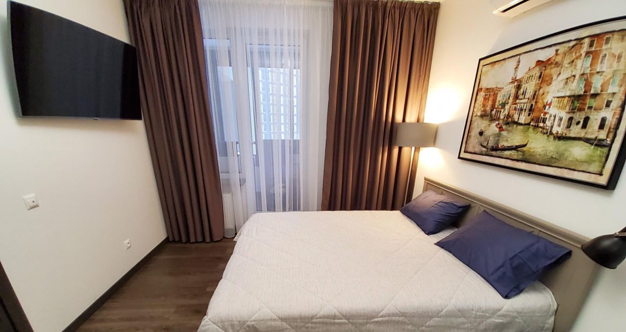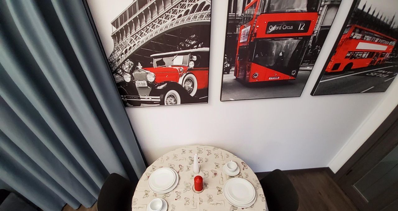 Квартира очень уютная, хорошо продумана. Везде красивые картины, шторы - блэкауты, удобная двуспальная кровать. Есть балкон со столиком и барными стульчиками.