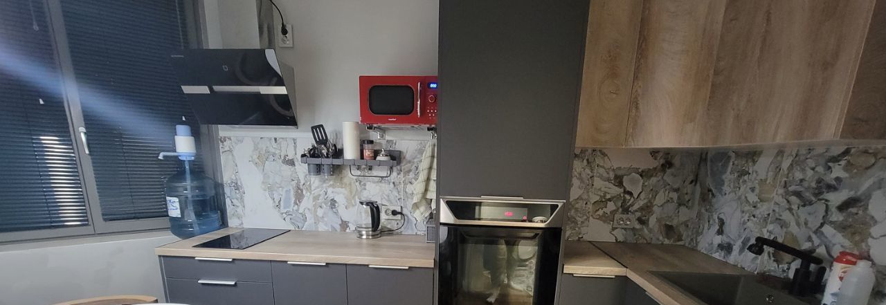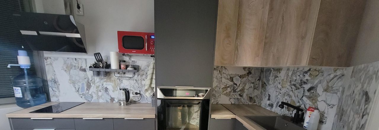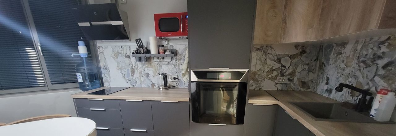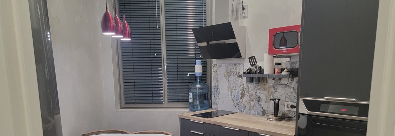 Квартира оформлена с дизайнерским ремонтом, что создает атмосферу уюта и стиля. В комнате и на кухне есть вся необходимая мебель. К вашим услугам современная техника: холодильник, телевизор, посудомоечная и стиральная машины, духовой шкаф, микроволновка. Ванная комната оснащена душевой кабиной, что добавляет комфорта.