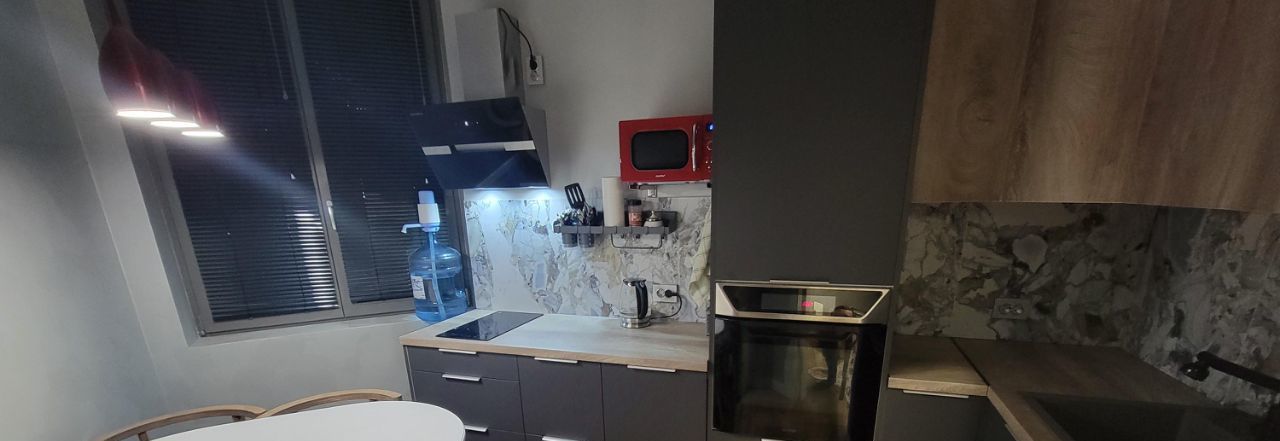 Сдается уютная однокомнатная квартира в новом доме 2024 года постройки. Общая площадь составляет 34,5 кв. м, из которых жилая — 15,2 кв. м, а кухня — 10 кв. м. Квартира расположена на 3 этаже 11-этажного дома. Окна выходят во двор, что обеспечивает тишину и спокойствие. В доме есть подземная парковка, а также пассажирский лифт.