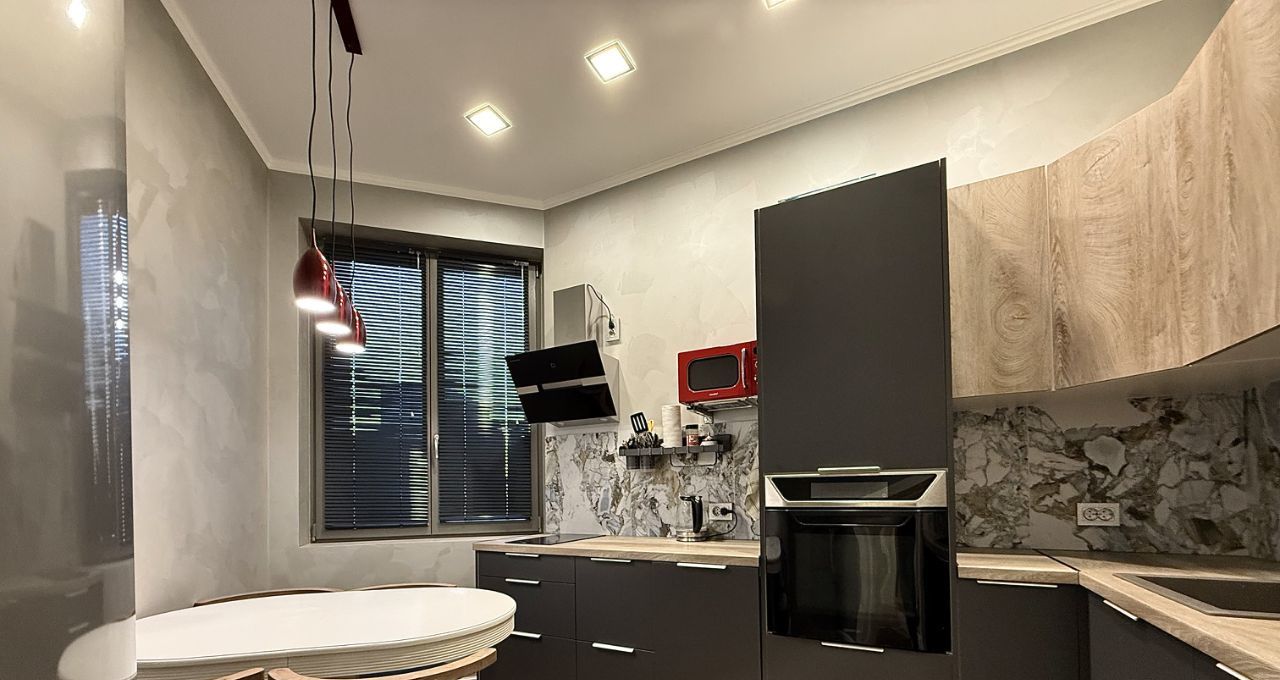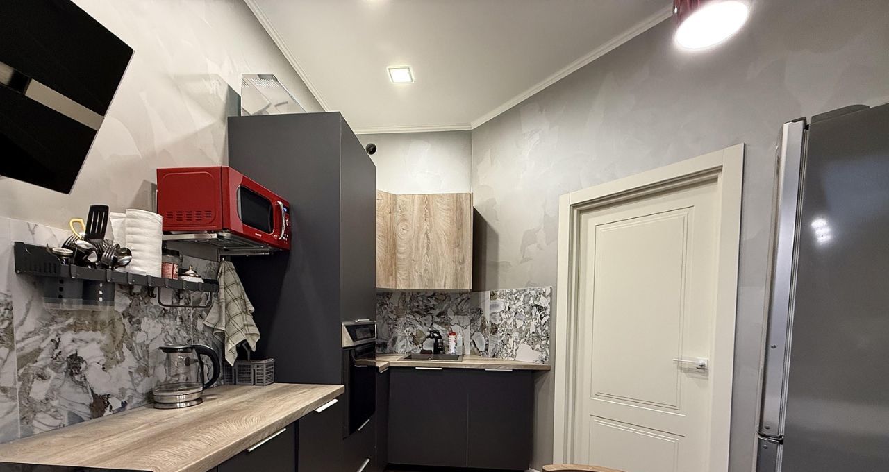 Квартира оформлена с дизайнерским ремонтом, что создает атмосферу уюта и стиля. В комнате и на кухне есть вся необходимая мебель. К вашим услугам современная техника: холодильник, телевизор, посудомоечная и стиральная машины, духовой шкаф, микроволновка. Ванная комната оснащена душевой кабиной, что добавляет комфорта.