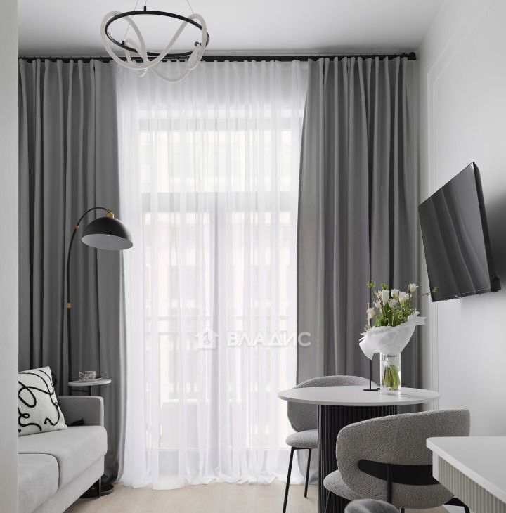 В квартире выполнен дизайнерский ремонт в серых оттенках. Все смотрится очень стильно и лаконично.