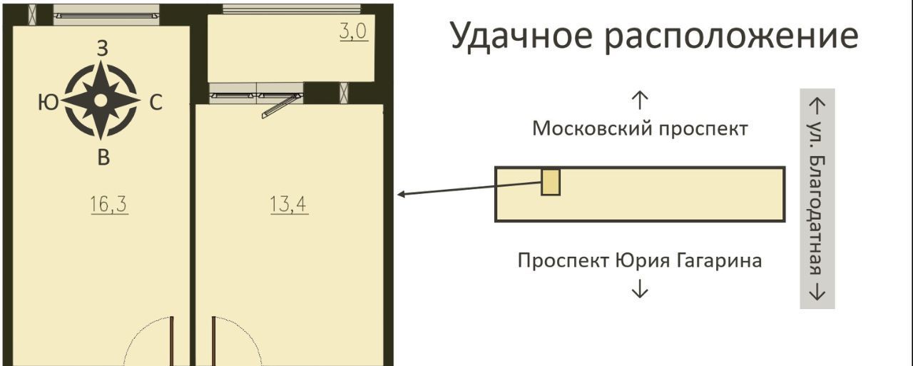 1-к кв. Санкт-Петербург Благодатная ул., 57 (41.7 м²)