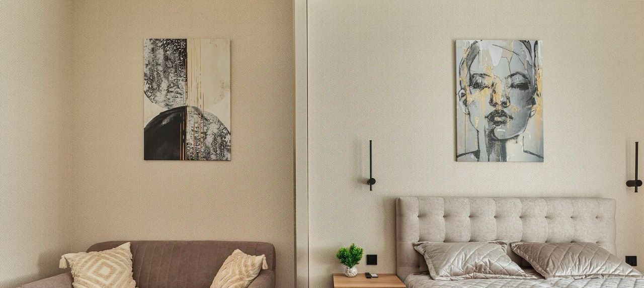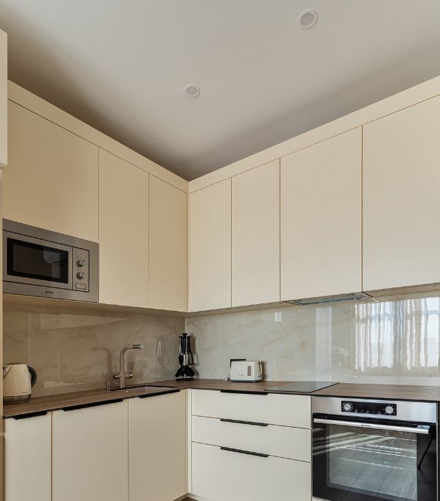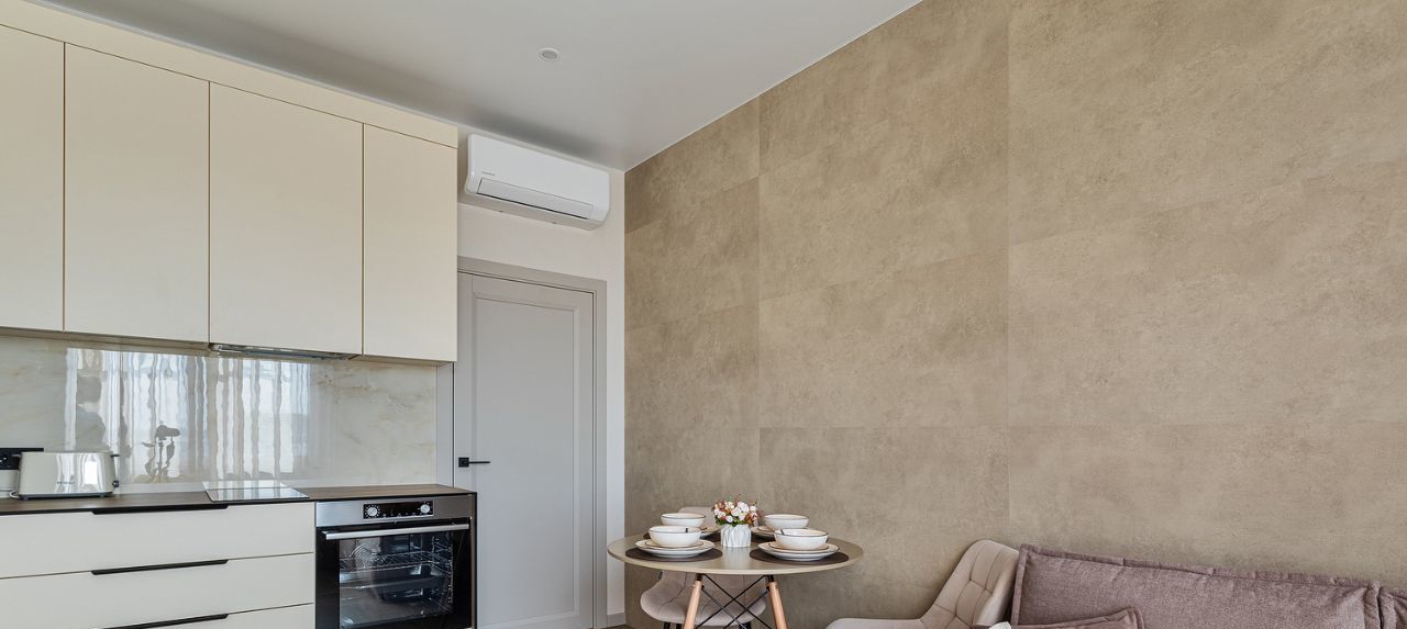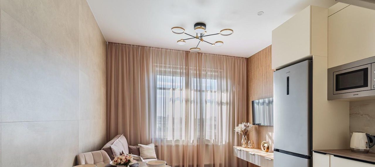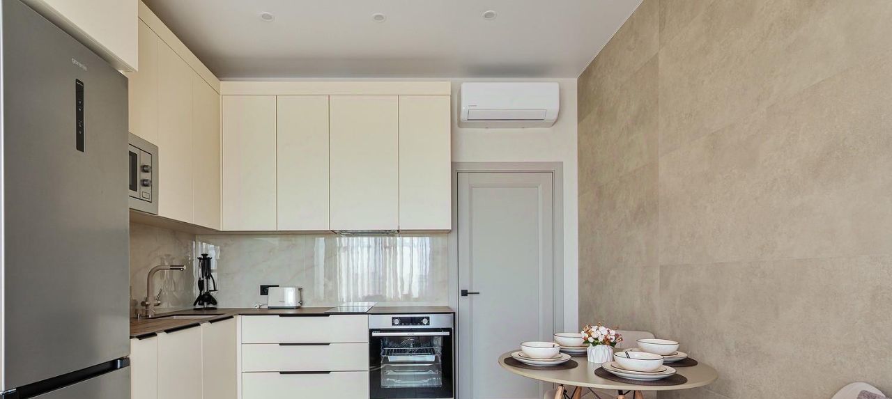 Квартира полностью готова для комфортного проживания. В комнате и на кухне есть вся необходимая мебель, а также современная техника: 2 кондиционера, холодильник, 2 телевизора, посудомоечная и стиральная машины, бойлер, холодильник, варочная панель, духовка, посудомоечная, СВЧ, тостер, кофемашина.