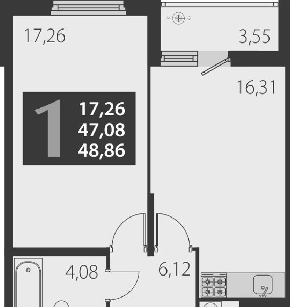 1-к кв. Санкт-Петербург Благодатная ул., 57 (48.0 м²)