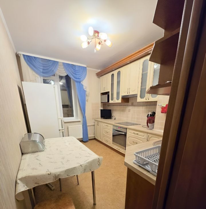 В квартире есть все для комфортного проживания. В коридоре: прихожая, шкаф купе; в комнате: диван, кровать, письменный стол, стенка под телевизор, шкаф. В кухне встроенная кухонная мебель с техникой (варочная панель, духовой шкаф микроволновая печь), 2-х Камерный холодильник, обеденный стол. Санузел совмещённый, с душевой кабиной. Установлена стиральная машинка. Дом расположен в районе с развитой инфраструктурой: в шаговой доступности находятся школы, детские сады и магазины.